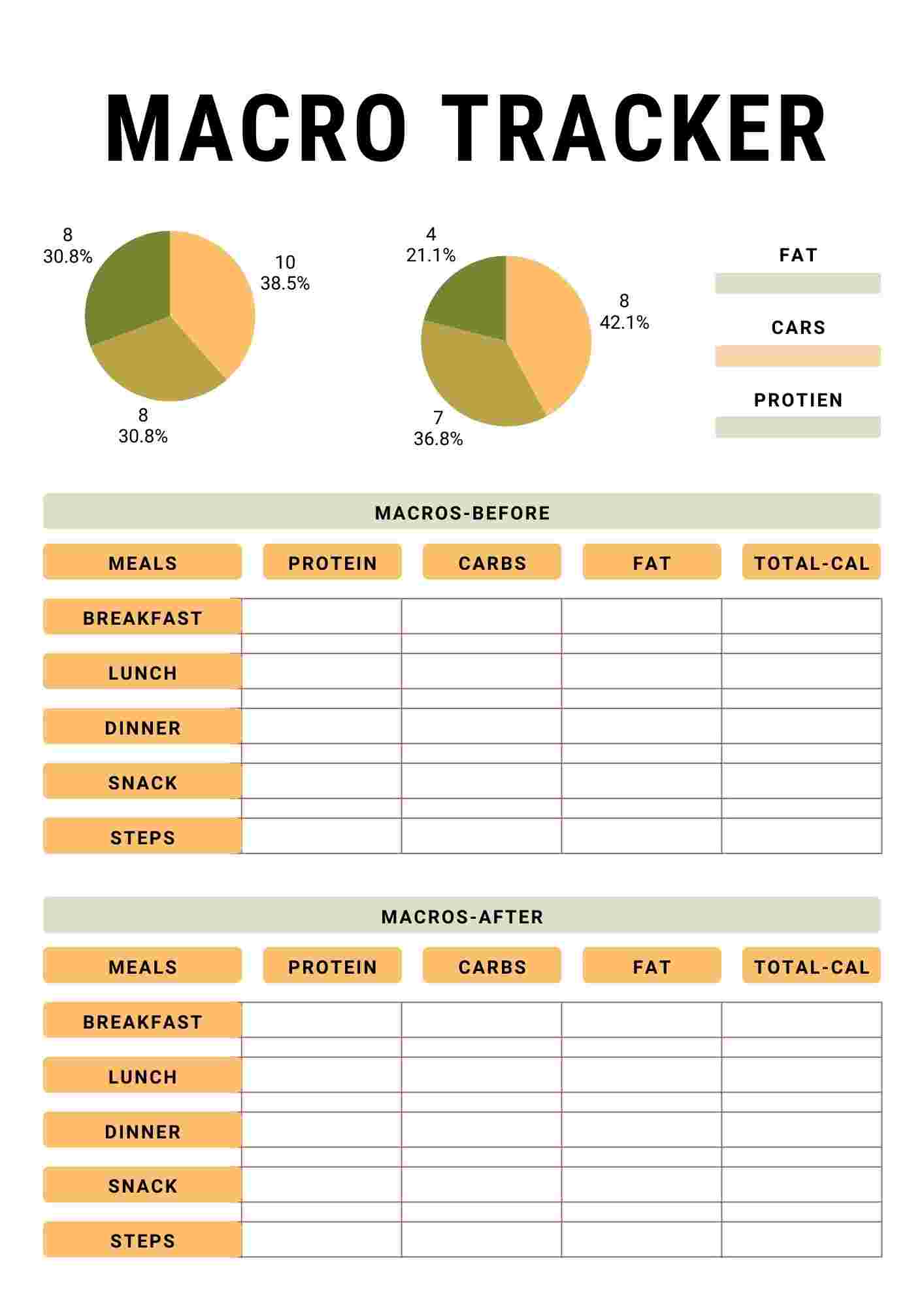 5.Macro/Calorie Track Sheet: Track everything to reach your goal